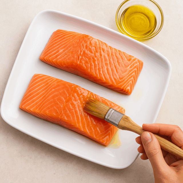 Brush salmon fillets with olive oil, ensuring both sides are evenly coated